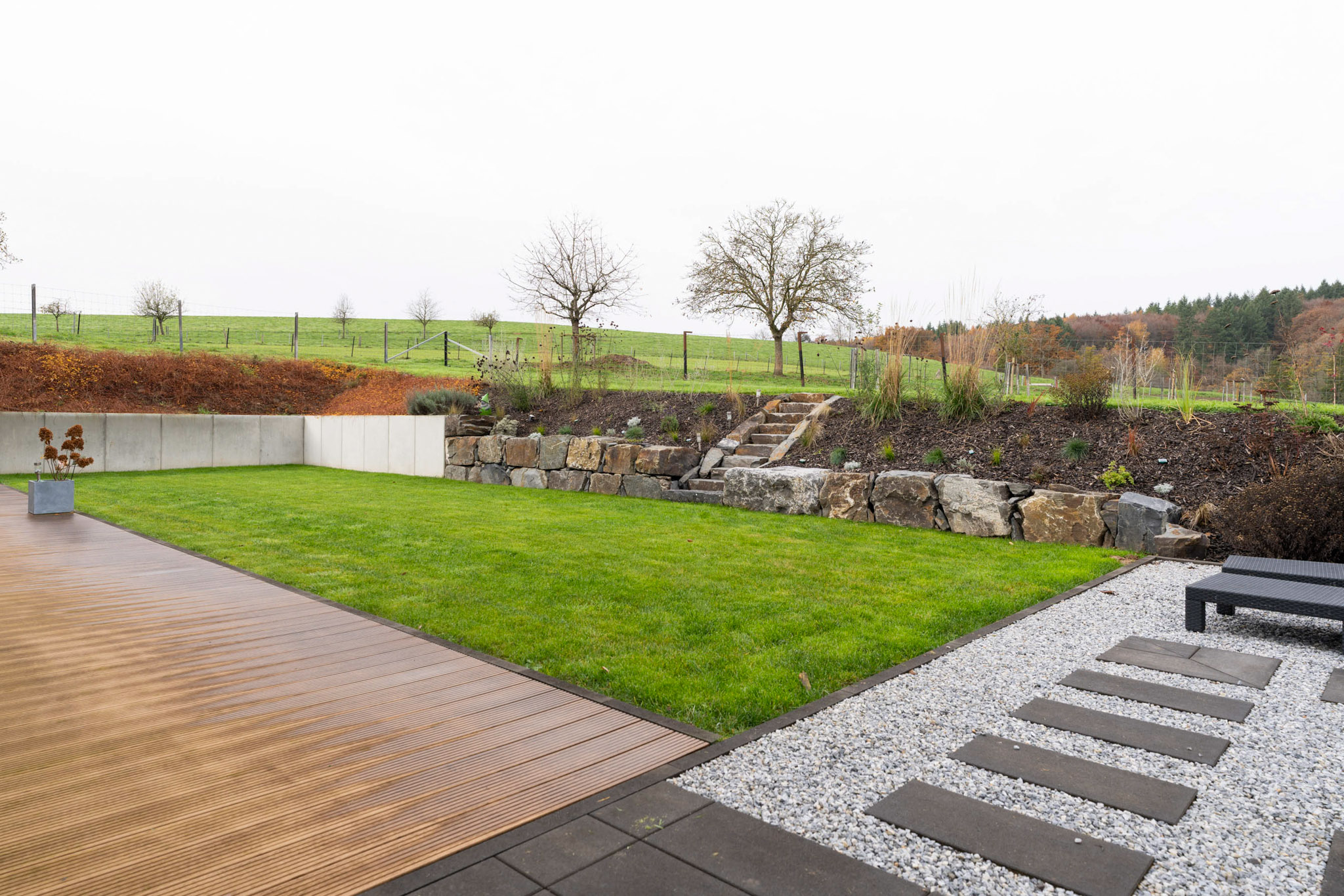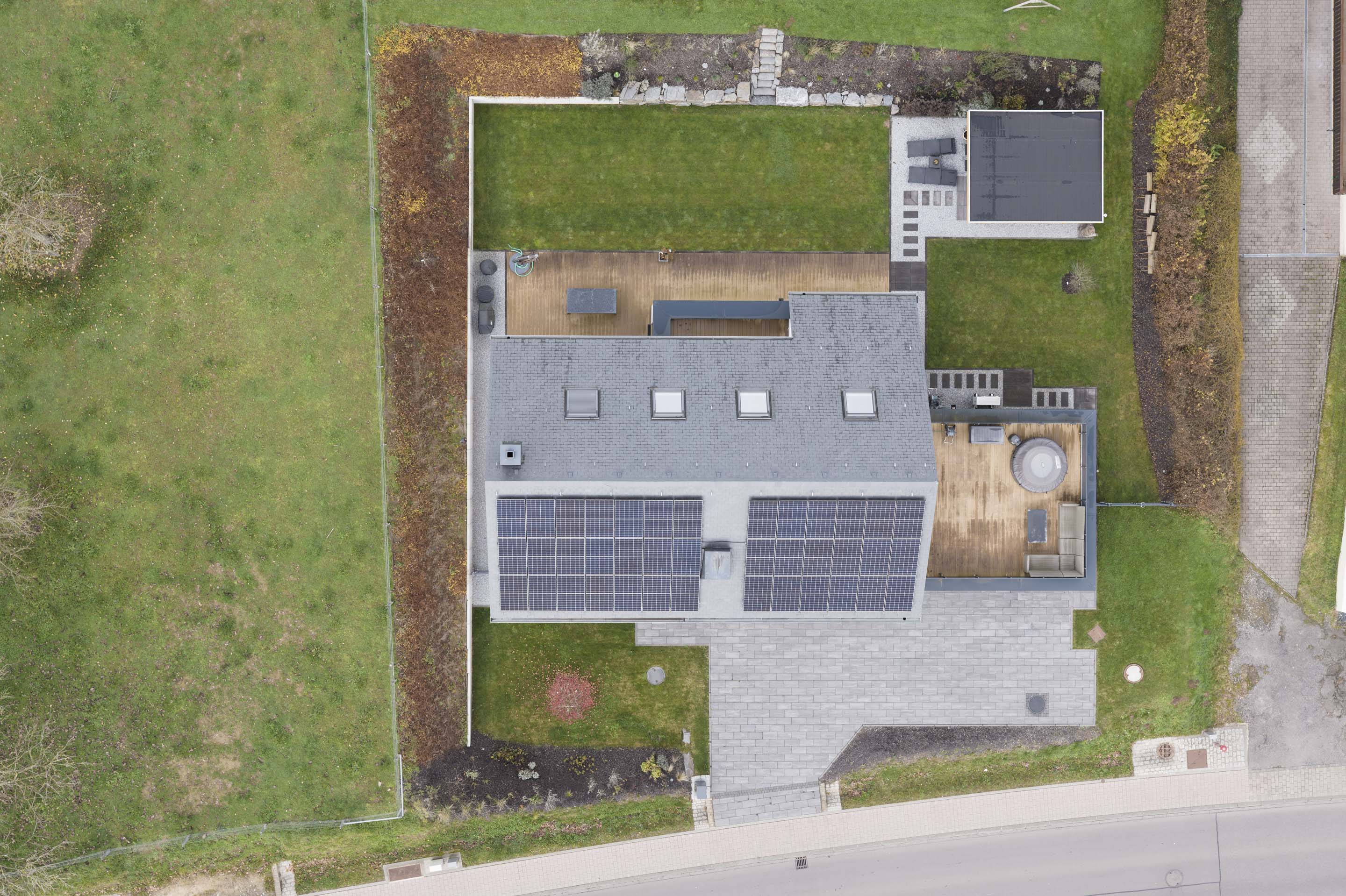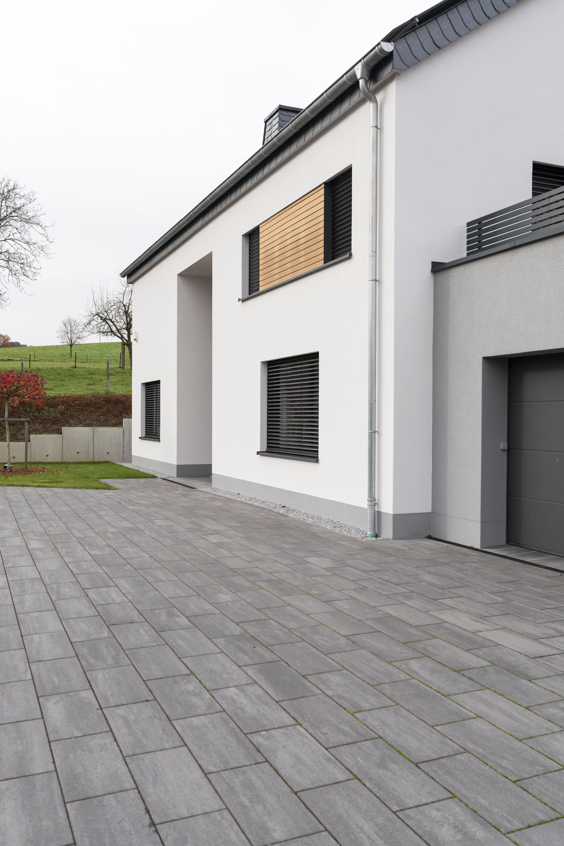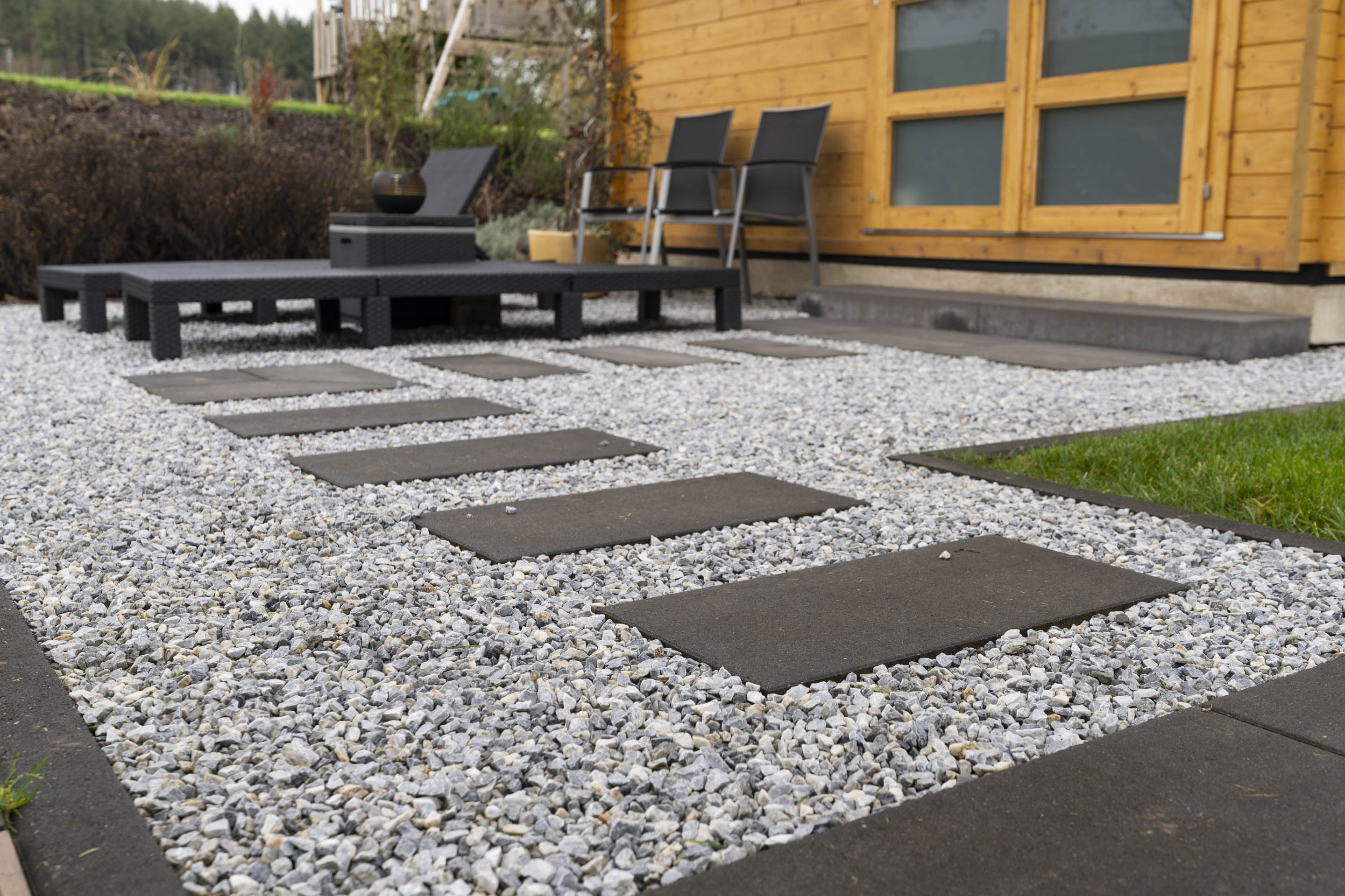 Die durch uns ausgeführten Außenanlagen greifen die klare Linienführung auf – mit strukturierten Flächen, sauberen Übergängen und einem stimmigen Gesamtbild.
