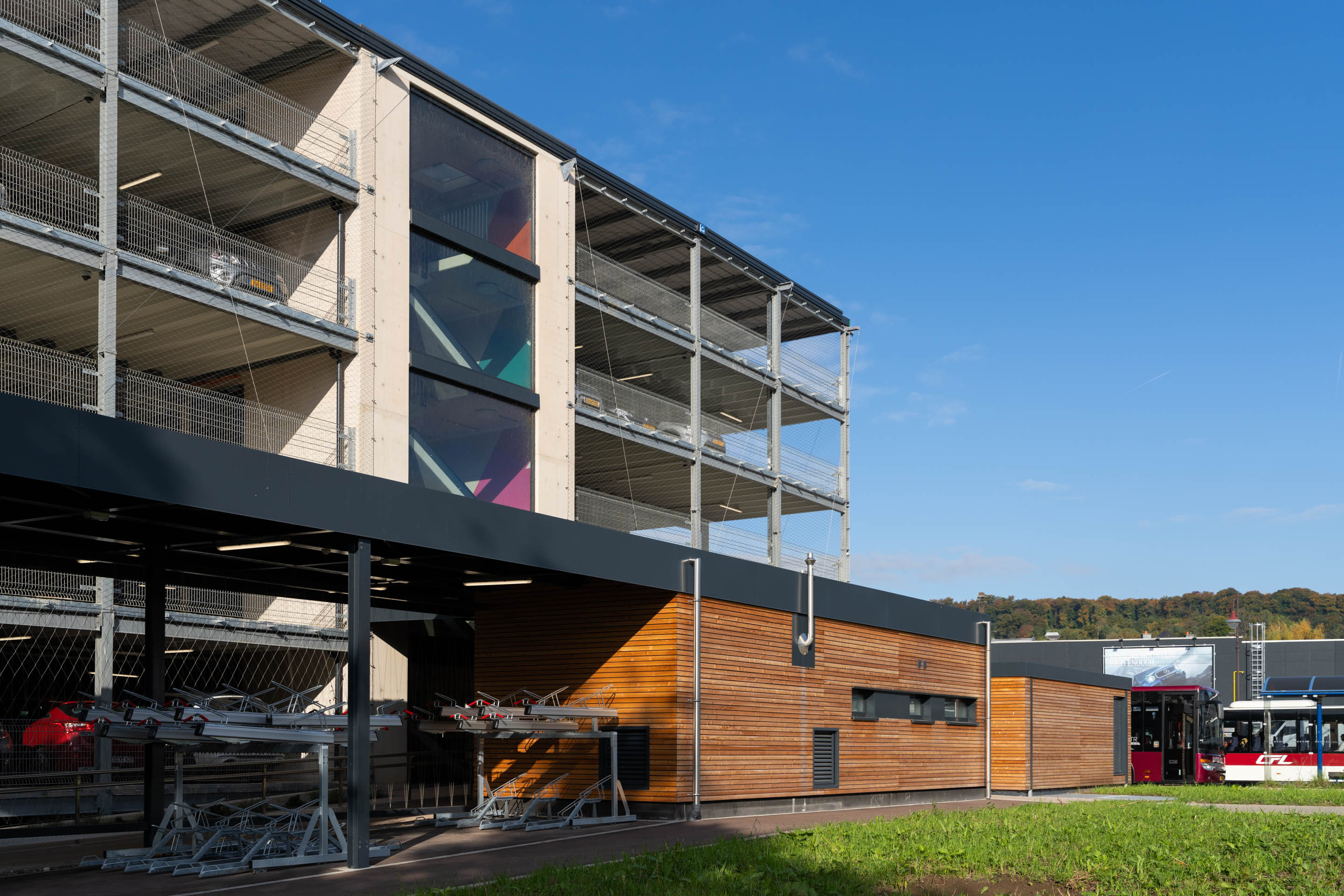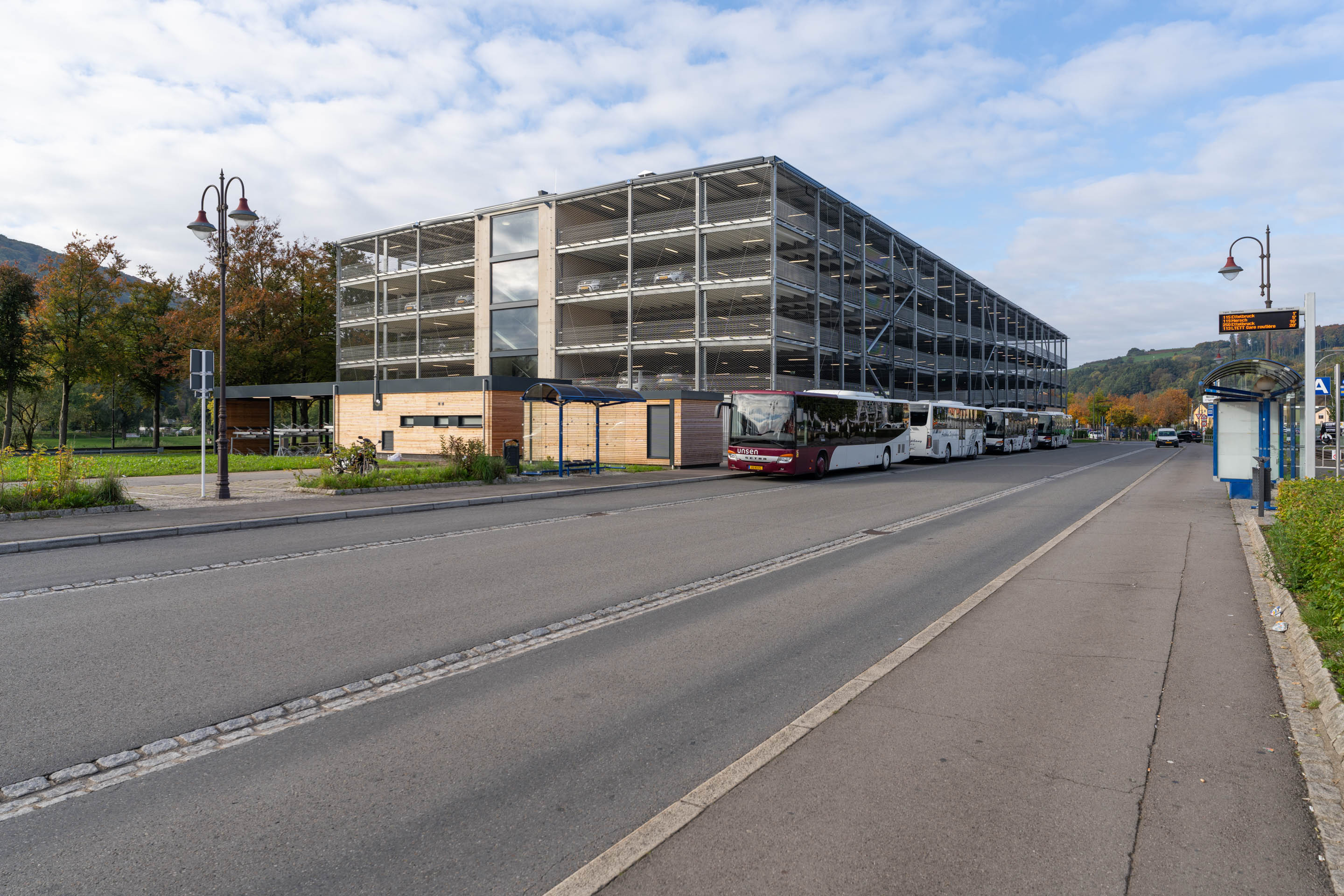 Mit dem „Parking Hippodrom“ verfügt Diekirch in unmittelbarer Nähe zum Bahnhof über ein modernes, mehrgeschossiges Parkhaus mit rund 650 Stellplätzen. Der Neubau wurde im Auftrag der Gemeinde Diekirch realisiert und ist Teil des städtischen Mobilitätskonzepts.