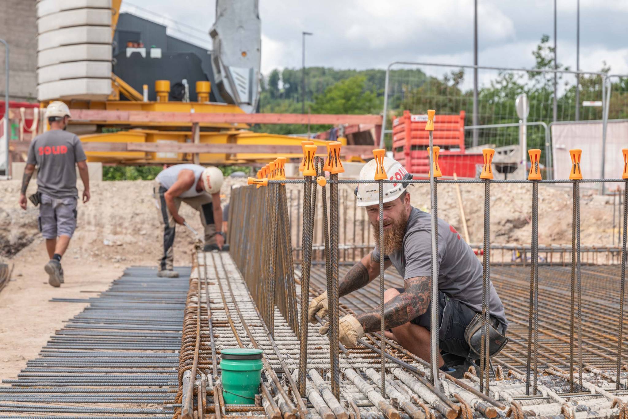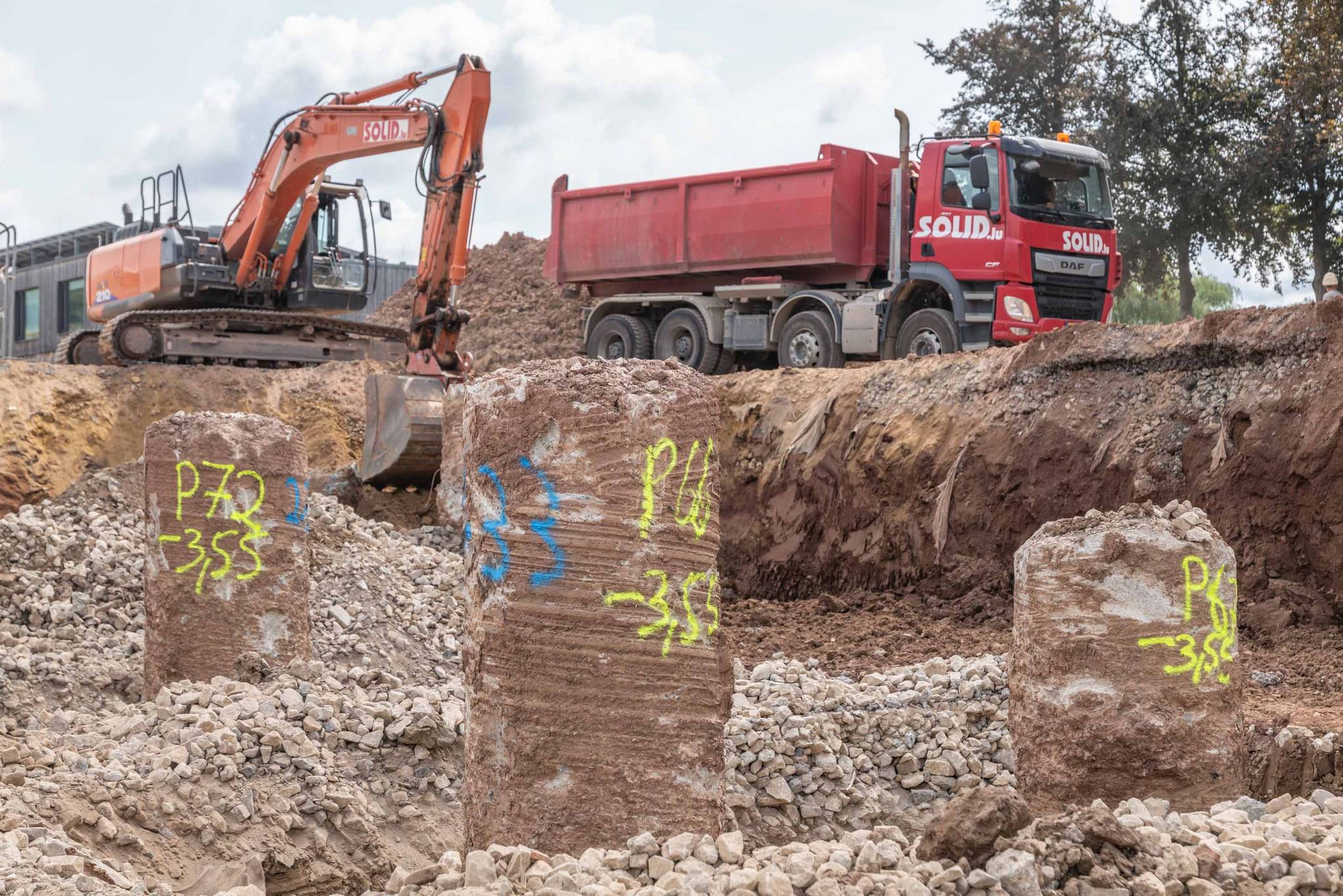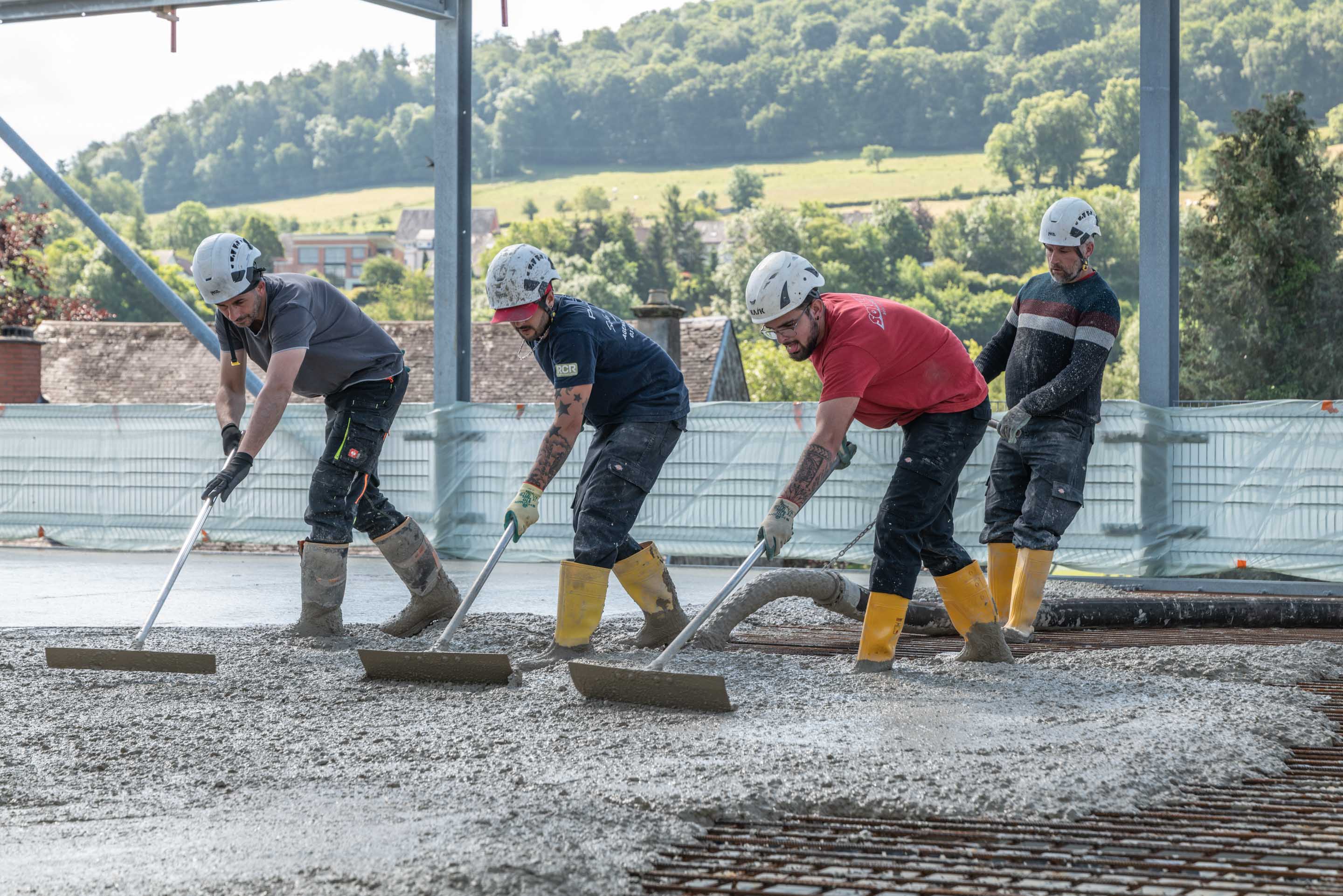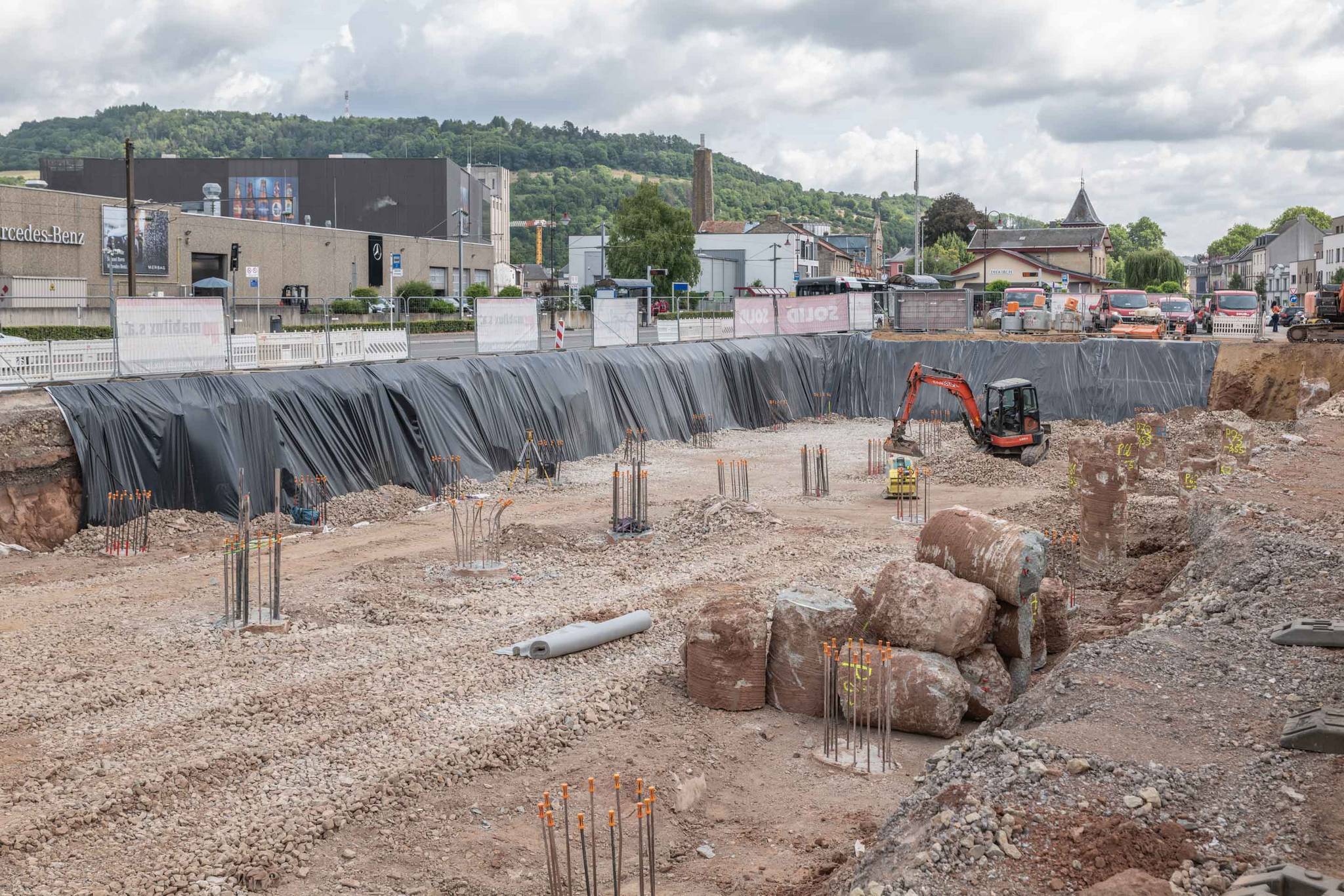 Unsere Leistungen umfassten die Bohrpfahlgründung, die Erd- und Stahlbetonarbeiten, die wir in Zusammenarbeit mit Mabilux ausgeführt haben, sowie die Außenanlagen. Die Treppenhäuser wurden in SOLID Sichtbetonqualität ausgeführt, während die Parkdecks durch unsere Kollegen von Solalux geglättet wurden.